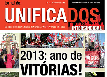 2013 vai chegando ao final, e para a direção do Sindicato Químicos Unificados fica a certeza de que foi um ano vitorioso para a categoria. Veja nesta edição um resumo das lutas durante 2013 realizadas pelas regionais de Campinas, Osasco e Vinhedo, com fotos e textos. Veja também que em 2014 será o ano da formalização da Intersindical, conforme decisão em seminário preparatório que reuniu representantes sindicais de 18 estados brasileiros. A edição traz também informações sobre a Festa de Fim de Ano.