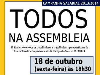 Campanha salarial: Assembleia na regional Osasco sexta-feira (18/10)