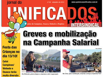 Com pressão, trabalhadores conquistam avanços na Eldorado, Flint e Ceva. No Dia Nacional de Lutas, Rhodia e Eldorado têm manifestação e atraso no início da produção. Sócio da PH6 agride dirigente sindical. Festa das Crianças, dia 13 de outubro, no Cefol da Regional Campinas/Vinhedo e Osasco. Aposentadoria especial e exposição ao benzeno serão temas de duas atividades do Unificados em outubro. Garantir controle do petróleo é a motivação de possível ataque dos Estados Unidos à Síria.