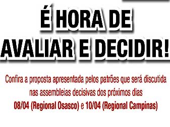 Assembleias para decisão dos trabalhadores sexta-feira (8) na sede em Osasco e domingo (10) no Cefol Campinas