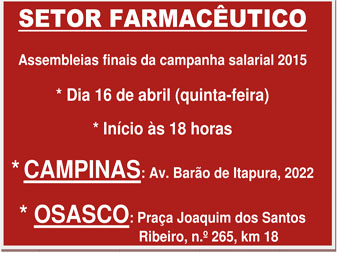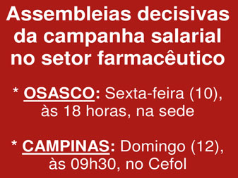 Nas sedes de Campinas e Osasco, às 18 horas. Campanha salarial dos farmacêuticos continua firme