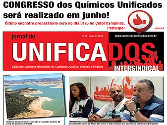 O VI Congresso do Químicos Unificados será realizado em 19, 20 e 21 de junho, em Louveira. Luta contra Shell/Basf é exemplo para outras fábricas Tragédia não pode se repetir. Campinas ganhará hospital especializado em tratamento de câncer. 1º de Maio pelo combate à terceirização. 29 de maio foi o Dia Nacional de Paralisação em Defesa de Direitos. Meio ambiente: Rafael Moyá, advogado e consultor de políticas ambientais, explica como modelo de desenvolvimento afeta recursos naturais.