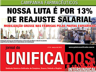 Assembleias de campanha salarial mobilizam no chão de fábrica. 8 de MARÇO: Mulheres A luta por igualdade e combate à violência ainda são desafios. Unificados apoia movimentos de luta por moradia, saúde pública e pelo fim do financiamento de campanhas políticas por empresas. O filme O Lucro Acima da Vida tem estreia em Campinas, no Teatro Castro Mendes. Entrevista: Magali Mendes, coordenadora de formação do projeto Promotoras Legais Populares (PLPs).