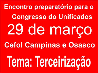 Dia 29/03: Encontro preparatório para VI Congresso do Unificados, no Cefol