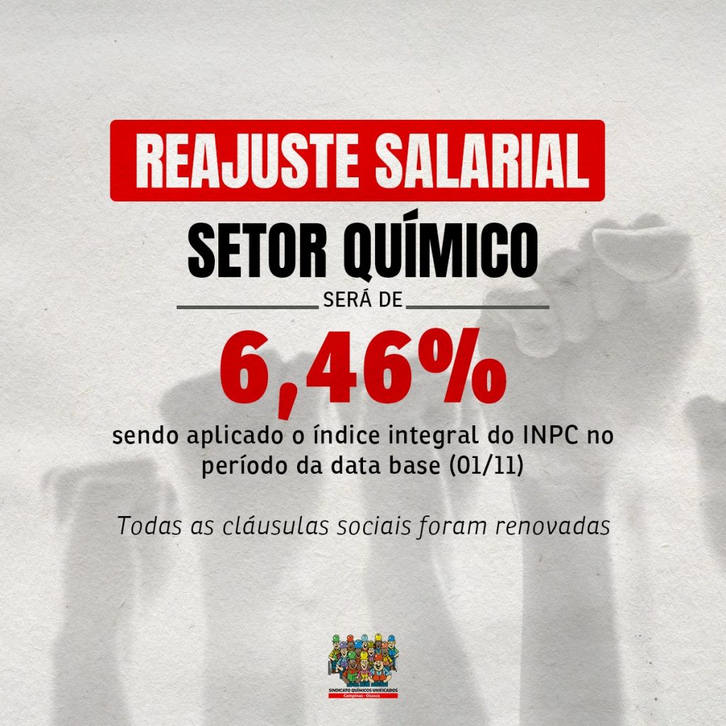SETOR QUÍMICO: REAJUSTE É DE 6,46%