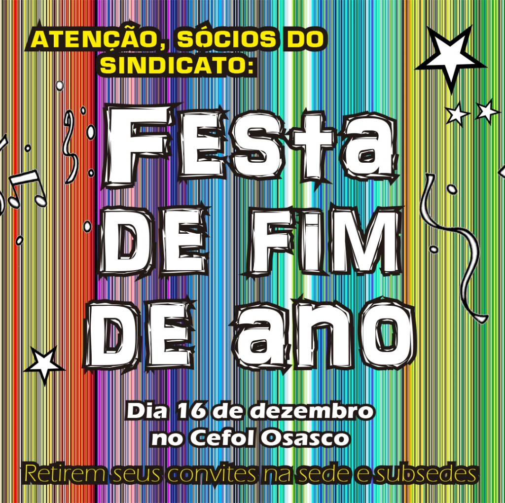 No dia 16 de dezembro acontece nossa tão aguardada festa de fim de ano no Cefol Osasco. Convidamos os sindicalizados e seus familiares a comparecerem nesse dia cheio de atrações, brincadeiras, boa comida e música. Para participar, os sócios devem retirar os seus convites e de seus dependentes na sede e sub sedes do sindicato […]