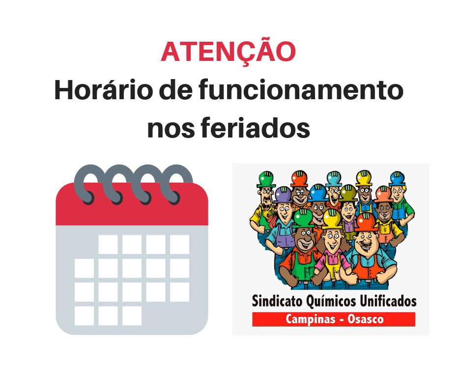 Fique atento ao expediente do sindicato e subsedes de Campinas e Osasco durante os feriados do dia 15/11 (Proclamação da República) e 20/11 (Dia da Consciência Negra) e também ao funcionamento dos Centros de Formação e Lazer das duas regionais. As sedes e sub sedes de Campinas e Osasco estarão fechadas nesta quinta e sexta-feira […]